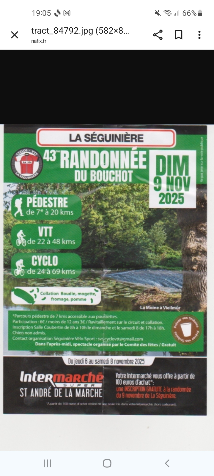 Pour consulter la liste des randonnées organisées en 2025, cliquez sur le bouton ci-contre Calendrier ASPC Cyclo organise Les Traver’Cé sportives le dimanche 19 octobre 2025 aux Ponts de Cé Pour voir le flyer, cliquez ici Les cyclotouristes du Lys organise la randonnée Châtaignes et Vin Nouveau le dimanche 26 octobre 2025 à Vihiers Pour voir le flyer, cliquez ici Randonnées Téléthon au Puy Saint Bonnet ledimanche 9 novembre 2025 Pour voir le flyer, cliquez ici La 43ème Randonnée du Bouchot organisée à La Séguinière aura lieu le dimanche 9 novembre 2025 Pour voir le flyer, cliquez ici